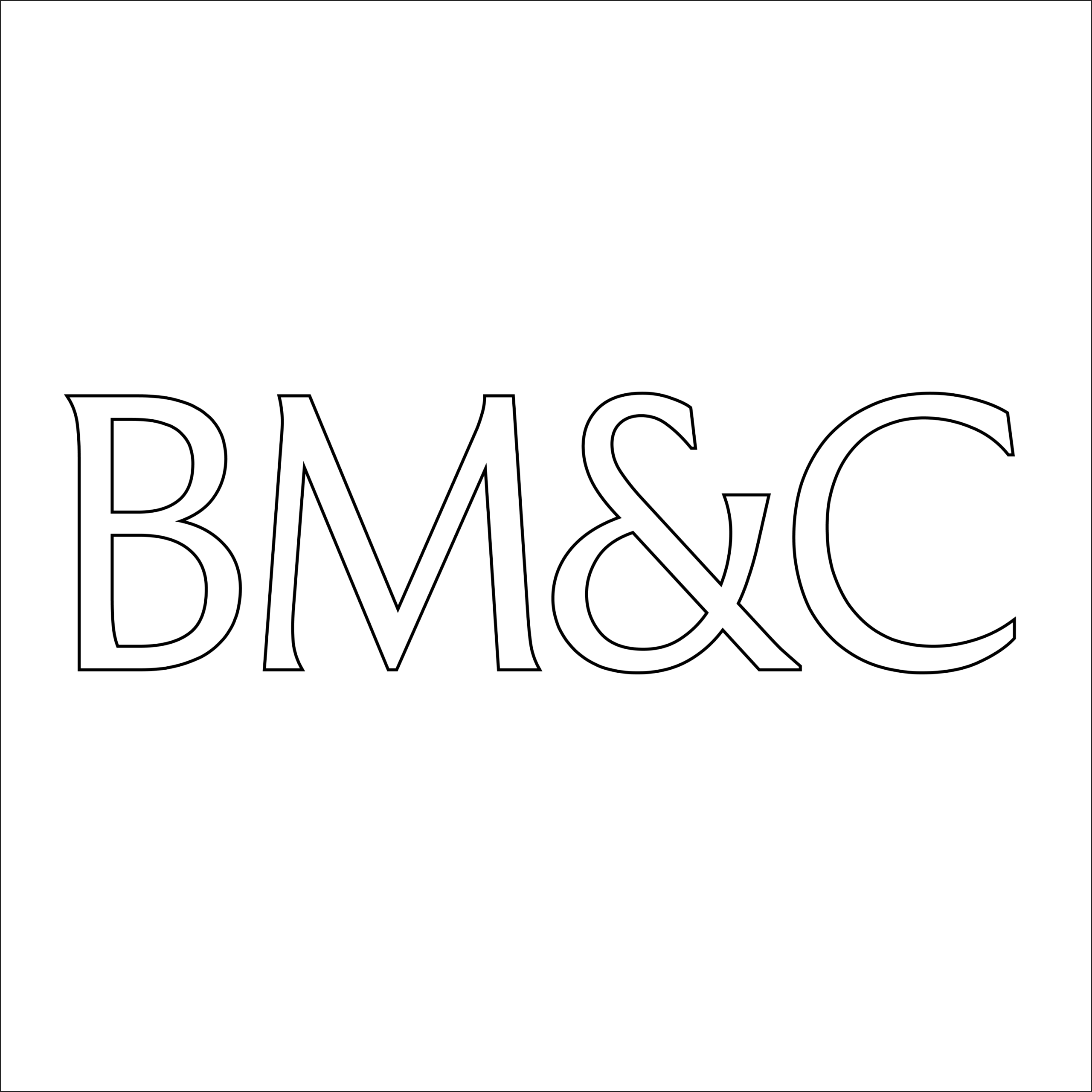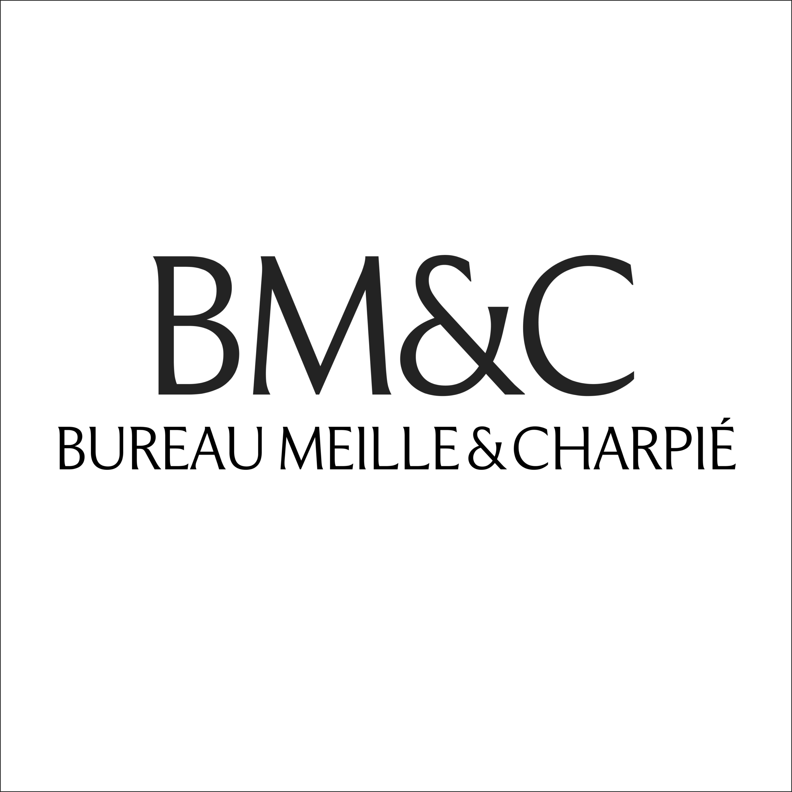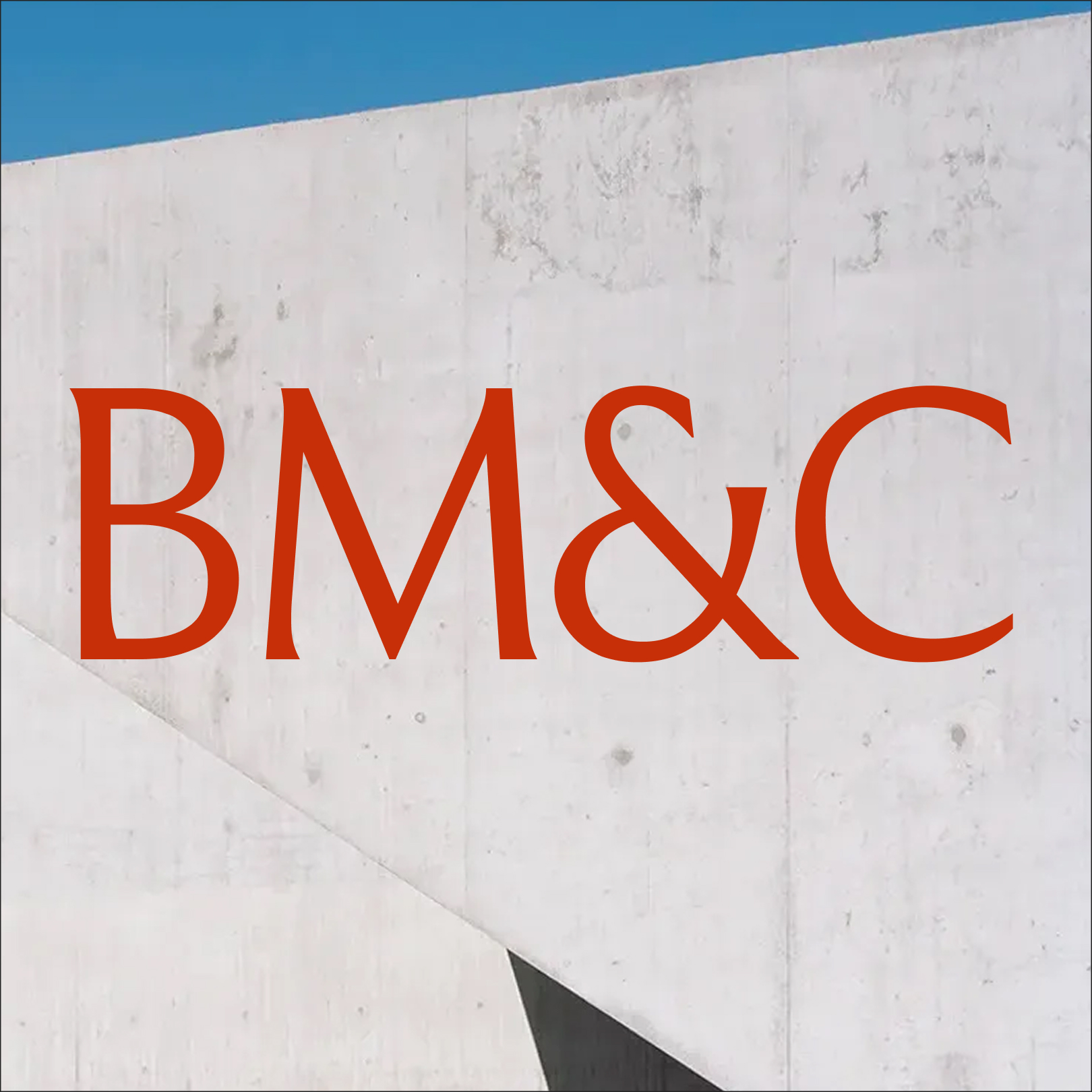 Le logo existe également en version courte. Les initiales BM&C permettent de créer un sigle élégant et impactant. Il peut être utilisé graphiquement pour habiller l'espace, ou au contraire pour assurer une lisibilité sur les petits formats.